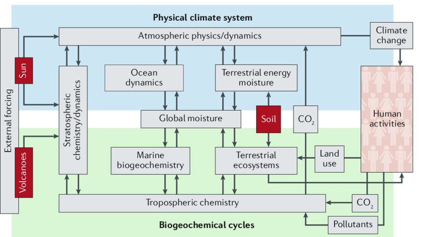 When I was an early career scientist, I encountered a diagram that changed my life. It’s a diagram of Earth as a system - the Bretherton diagram, named after Francis Bretherton - showing atmosphere, ocean, land, biosphere, and ice, all connected by arrows showing the flow of energy and matter between them.